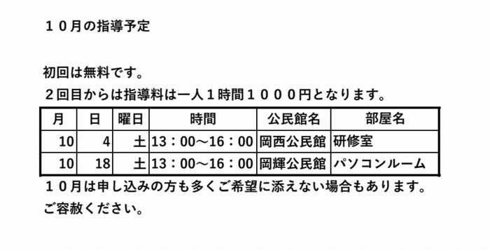 ※ 特別に教材などを使用した場合は別途費用を申し受けることもあります。その際はご連絡申し上げます。