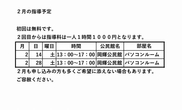 2月の指導予定