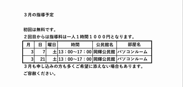 3月の指導予定
