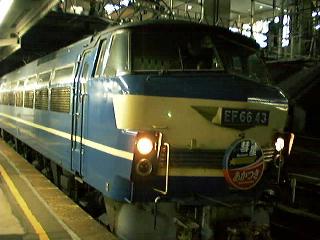 ↑JR西日本EF66電気機関車「あかつき・彗星号」