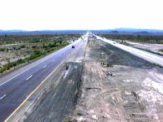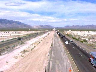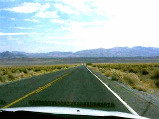 二日目:デスバレー周遊 昨夜ホテルに到着したのは23時前後だったが、よせばいいのにカジノで散財してしまい、睡眠時間は2時間くらいしかとれなかった。それでも今日は、前回行きたくて行けなかったデスバレーを目指すということで、ばっちり予定時刻に目覚めた。 朝7時半にホテルをスタート。まずはI-15に乗り、アメリカらしい大ジャンクションを左にとってI-515に入る。当地でも朝のラッシュアワーは厳しく、首都高なみの交通量があり、慎重にクルマを走らせた。やがて高速道路はそのまま一般道に変わり国道93号となった。この辺まで来ると交通量も減って、昨日同様の快適な一本道のドライブとなる。70〜80マイルで飛ばすが、車線にタイヤの破片が落ちていたかと思うと、路肩にバーストしたてのトラックが止まっていたりしている。緊張感を持って運転しないといけない。 |