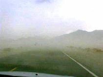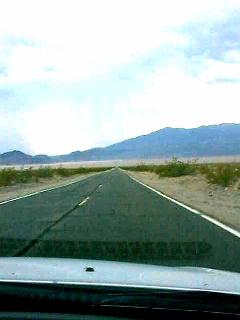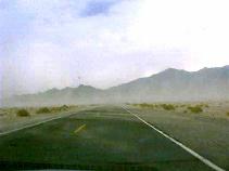 | バッド・ウォーターを出ると、あとはラスベガスに帰るだけである。州道178号線を南下し、峠を越えてシューショーンという町に出るわけだが、バッドウォーターから南は極端に交通量が少なく、1時間の間にすれ違ったクルマは10台に満たなかった。 シューショーンからは州道127号線である。途中の砂漠地帯では、猛烈な砂嵐に巻き込まれ前がまったく見えなくなった。また、その後は突然の豪雨で、道が川のようになっていたりしていた。後から振り返れば、この旅の間に走った道路の中で、一番退屈させない道路だった。 紆余曲折がありながらベーカーという町に到着して、14時半ころ遅めの昼ご飯を食べる。昼ご飯といっても、またもファーストフード。牛肉が挟まったハンバーガーみたいなものだったが、見た目に反してけっこう美味かった。 |