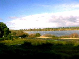 列車は8時52分にニューマーケット駅を発車した。しばらくは都市近郊の車窓が続くが、貨物駅を進行方向右手に見て川を渡ると、徐々にニュージーランドらしい風景が広がっていく。ちょうど虹もかかっていて、いいアクセントになっていた。日本の風景に例えるなら、美瑛あたりの丘の風景に良く似ている。そういえば今から通るハミルトン近郊のケンブリッジという町は美瑛と姉妹提携を結んでいるとのこと。また、この辺には湖も多く、車窓がバラエティに富んでいた。しばしの間、私は車窓から目を離すことが出来なかった。 さて、車窓をみやりながらボーっとしていると、不意に誰かが私の肩を叩いた。見上げると、先ほど駅でやりとりしたスキンヘッド氏だった。彼は笑顔で私にコインで3ドルを手渡した。実はキップを購入した時、47ドルの代金に対し50ドルを出した私に、彼はオツリがないことを告げ「後で返すから」みたいなことを言っていた。オークランド駅で訳の分からぬままバスに乗り、そのオツリのことも忘れていたが、彼はちゃんと覚えてくれていたのだ。ニュージーランドの人々は親切だという定評があるが、それを垣間見た思いで正直感激した。 |