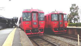 ![]() 阿蘇駅で顔を合わせた九州横断特急 |